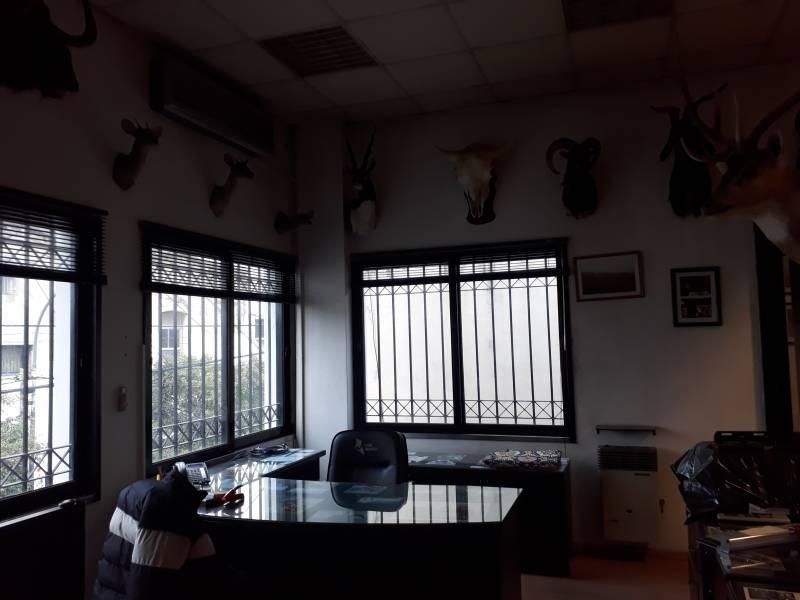 Consta de hall de entrada con piso cerámico y estufa, sala de reuniones con piso flotante, cocina integral con muebles bajo y sobre mesada, baño completo, depósito, entrada de vehículos y doble circulación a planta alta por escalera metálica. En planta alta se encuentran tres despachos privados con estufa y piso flotante, baño y deposito con entrepiso.