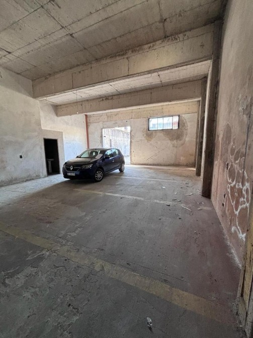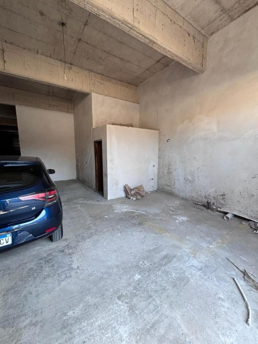 Galpón con portón de ingreso ciego, techo de losa y piso de hormigon.