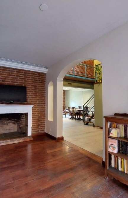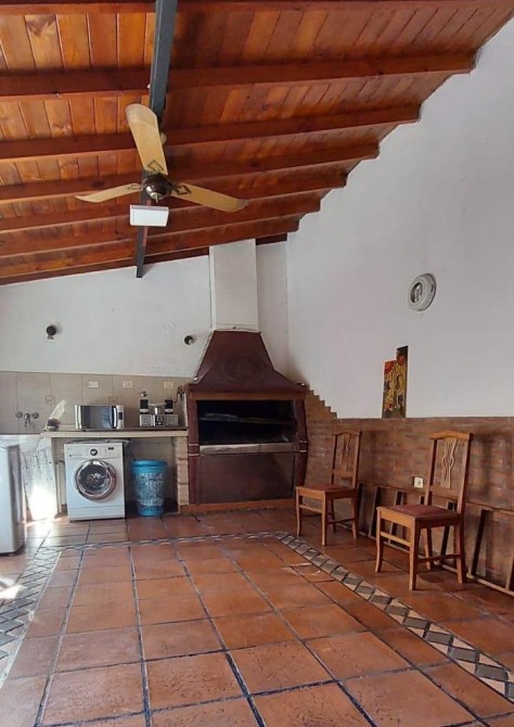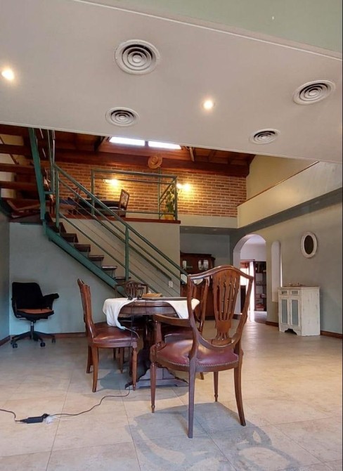 PLANTA BAJA: Hall de acceso, living comedor en doble altura, comedor diario, escritorio/ cuarto dormitorio/estar con piso tarugado, cochera con porton automatizado levadizo, cocina con comedor diario, lavadero, patio/fondo, quincho con parrilla y baño.