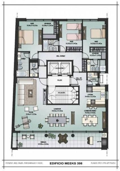 Consta de amplio estar comedor en L con aire acondicionado centralizado, cocina integrada con mesada de silestone, vista al frente con balcon cocrrido, parrilla a gas y espacio de guardado, 3 dormitorios con baño en suite y placards con interior, lavadero, 2 cocheras cubiertas y baulera.-