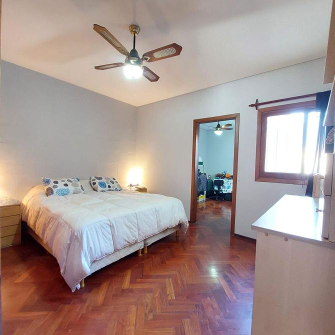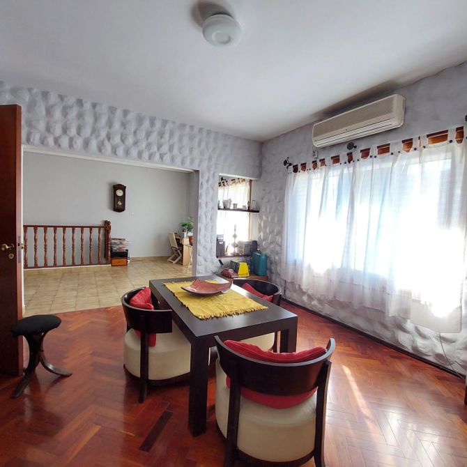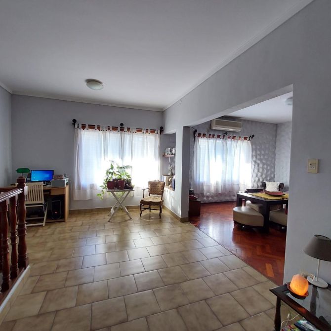 COMEDOR de 4,25 x 4 mts. con piso de parquet y A.A, ventanas al frente con reja y postigo; BAñO completo con bañera y placa calefactora; DORMITORIO PRINCIPAL de 4,35 x 3,80 mts. con piso parquet; DORMITORIO SECUNDARIO de 2,80 x 4 mts. con piso parquet; COCINA con mueble bajo mesada, piso cerámico, ventana con reja; Segundo Piso:QUINCHO de 4 x 3 mts.;TERRAZA de 8 x 5,50 mts con LAVADERO, PARRILLA Y BAULERA; La cochera es una unidad funcional separada de la propiedad y puede ser utilizada como comercio ! * APTO CREDITO *