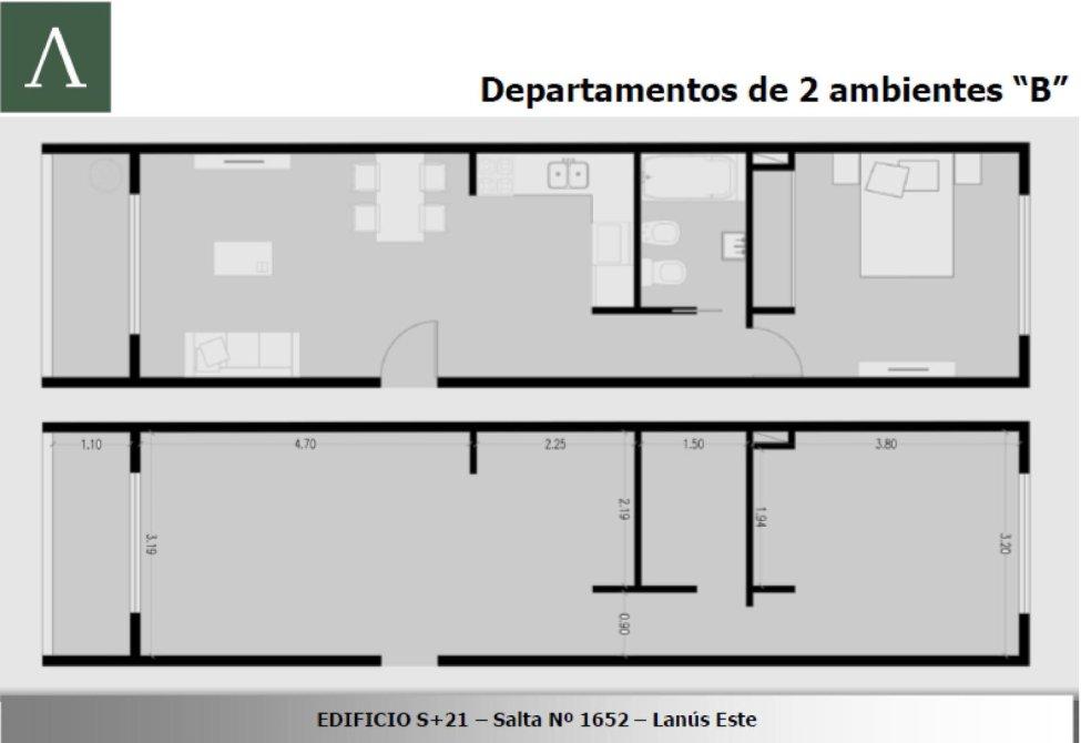 de 2 ambientes de 49 m2