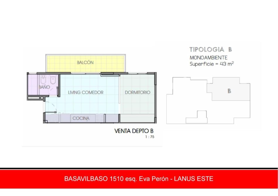 Contará con 50 m2 distribuidos en living comedor, cocina, baño, dormitorio.