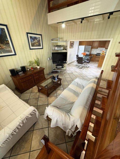 La vivienda principal cuenta con tres dormitorios, dos baños (uno en suite), cocina integrada a un amplio living comedor con salida a un patio interno con parrilla y cuarto de guardado.