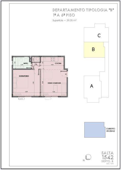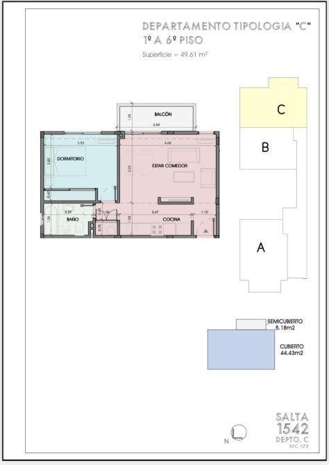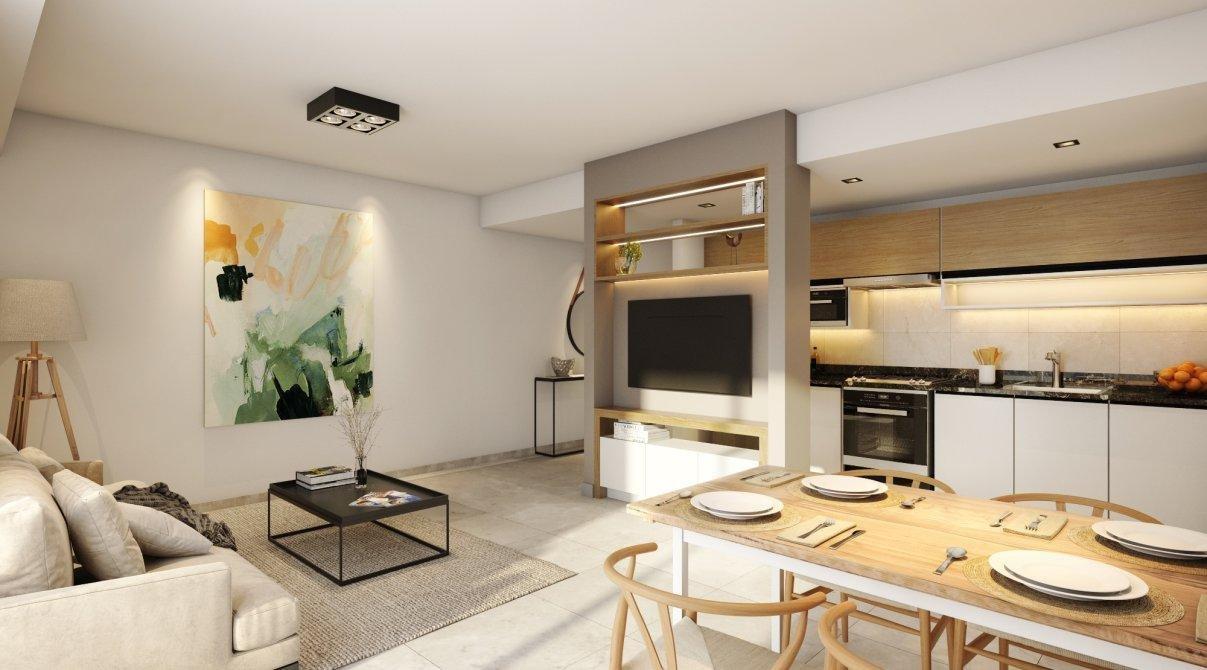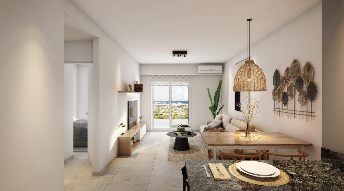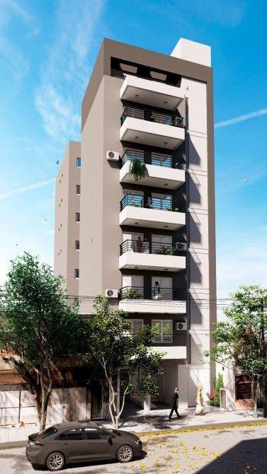 Departamento en construcción, que consta de living comedor con balcón, cocina integrada, dormitorio y baño.