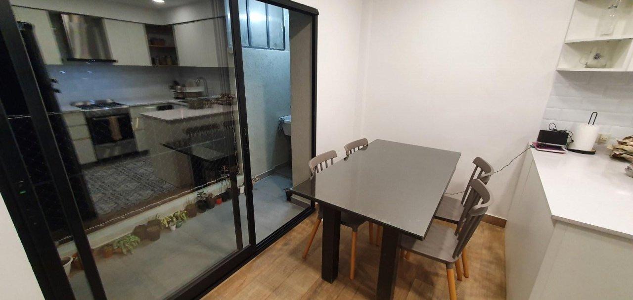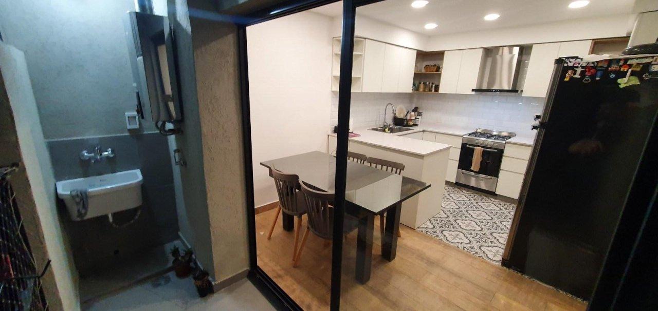 -Cocina / comedor: (4 X 3), altos y bajomesada y desayunador; piso porcelanato. Conexion lavarropas y lavavajilla.