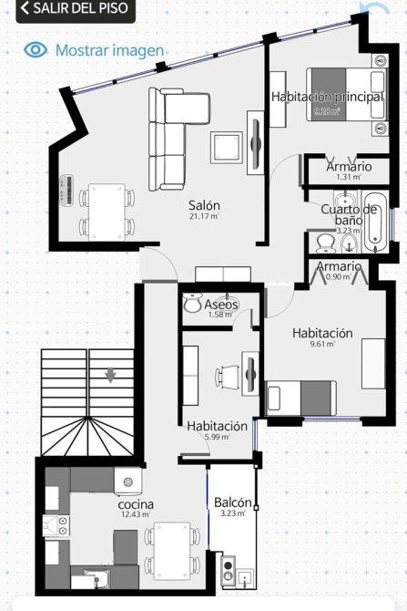 -Baño: (2 X 1.65) completo con bañera y ventana.