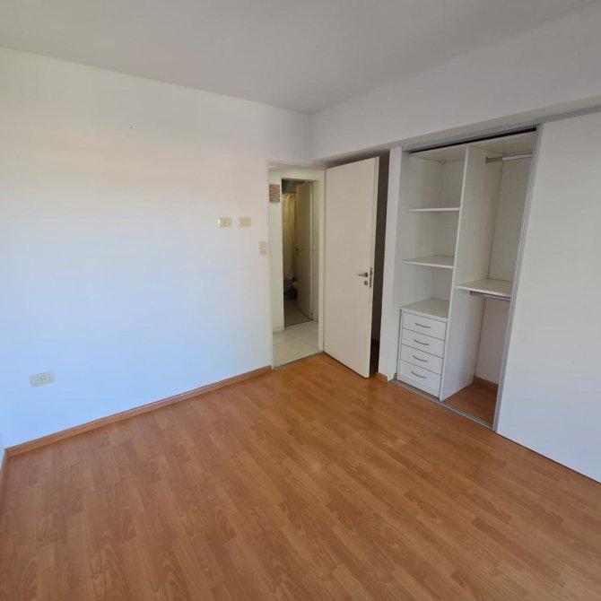 Dormitorio principal: 3,50 × 3,00 m, piso flotante, radiador, placard con interiores, salida al balcón al frente.
