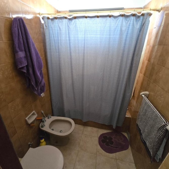 Baño completo: 1.55 x 2.00 m, con bañera, inodoro, bidet y piso cerámico.