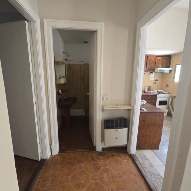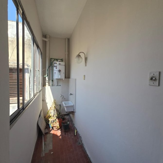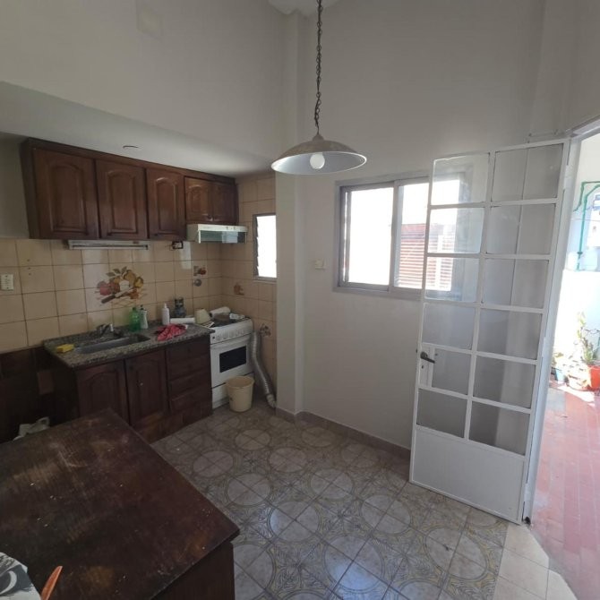 • Cocina con pasa-platos al living, de 3.40 x 2.40 m, equipada con bajo mesada, alacena, pisos cerámicos, ventana al contrafrente y salida a lavadero.
