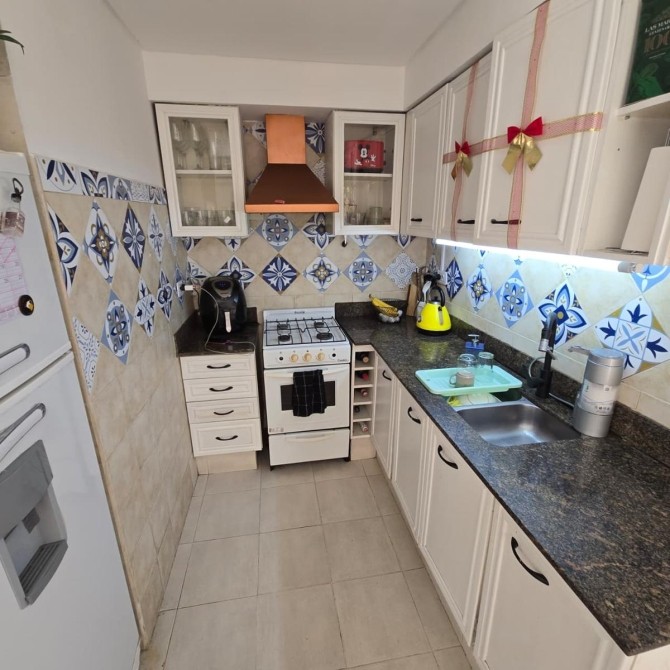 Cocina integrada: 2.20 x 1.65 m, con alacenas y bajo mesada, piso cerámico.